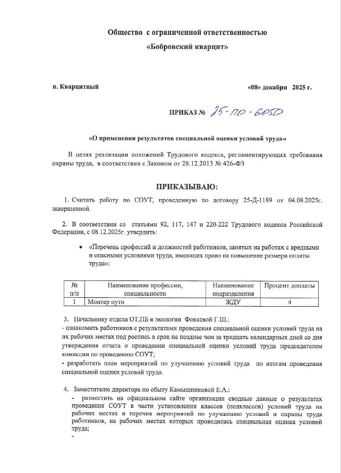 Приказ 25-по-6050 от 08.12.2025 о прим рез-тов специальной оценки условий труда